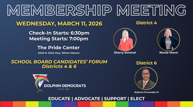 MEMBERSHIP MEETING Join us on Wednesday, February 11, 2026, for our Dolphin Democrats Membership Meeting at The Pride Center in Wilton Manors.…