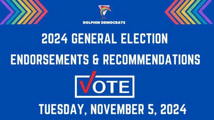The Dolphin Democrats Campaign Committee and the Board of Directors are honored to announce our endorsed candidates and recommendations for the upcoming General Election on Tuesday, November 5, 2024.